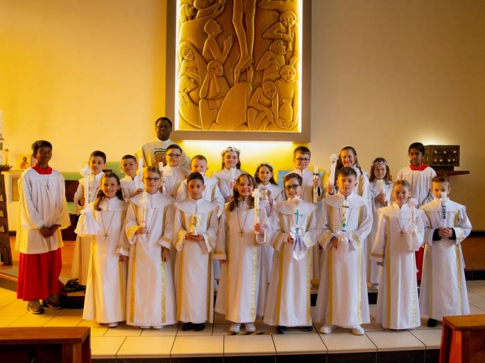 Am 21. April 2024 feierten in der Ortskirche Christkönig 17 Mädchen und Jungen ihre Erstkommunion.